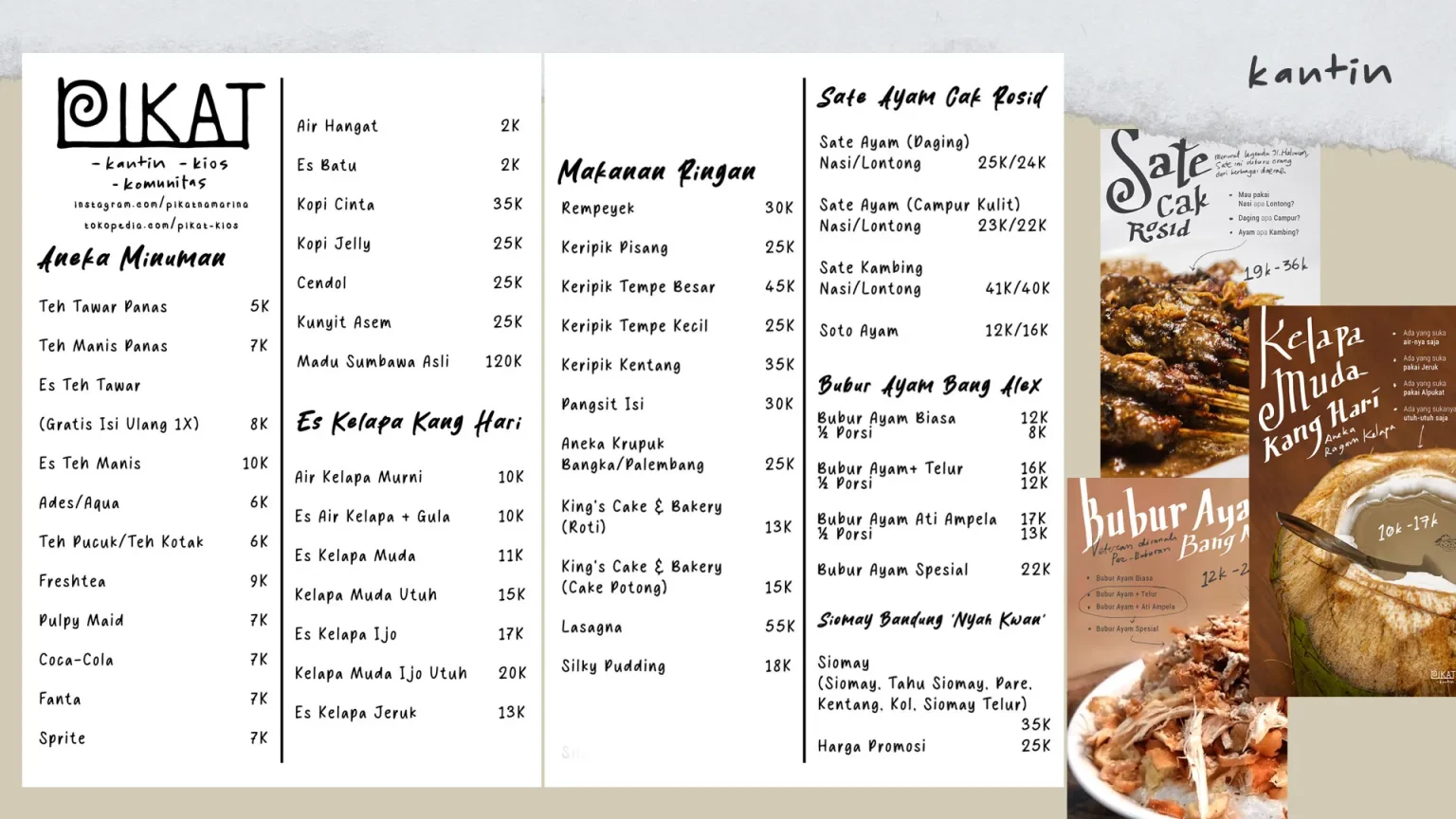 Seiring dengan pembaharuan PIKAT, unit Kios tidak lagi hanya menyediakan seragam dan beragam aksesoris yang mendukung kegiatan belajar dan mengajar di NAMARINA tetapi sejak diaktifkannya kembali kampanye #SUPPORTTHEARTS, juga tersedia beragam merchandise yang didesain dan diproduksi langsung oleh para kontributor yang tergabung di dalam exhibition dalam rangka merayakan ulang tahun NAMARINA yang ke-65.